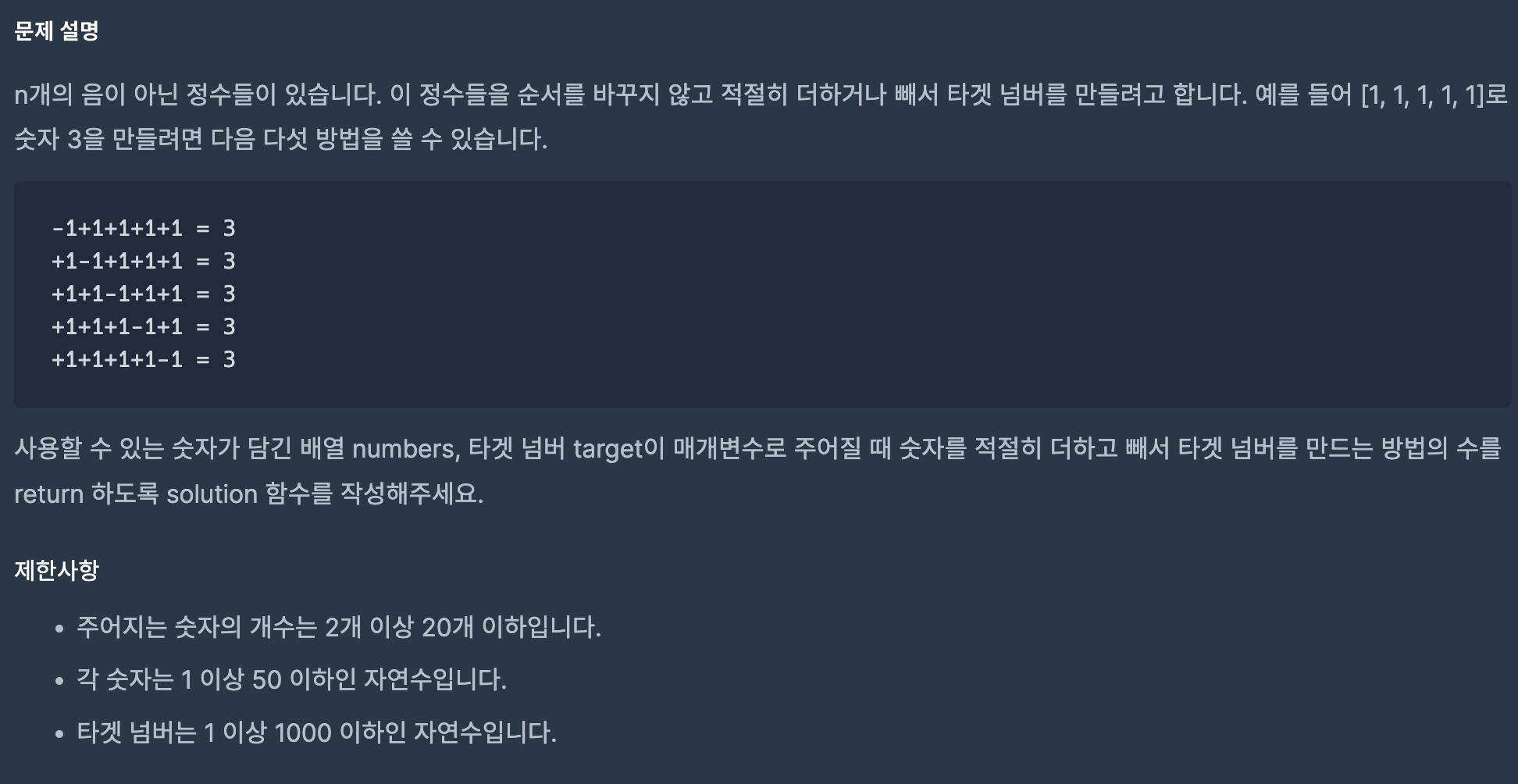 # - numbers[i] 을 더한경우와 뺀경우로 나누어서 진행