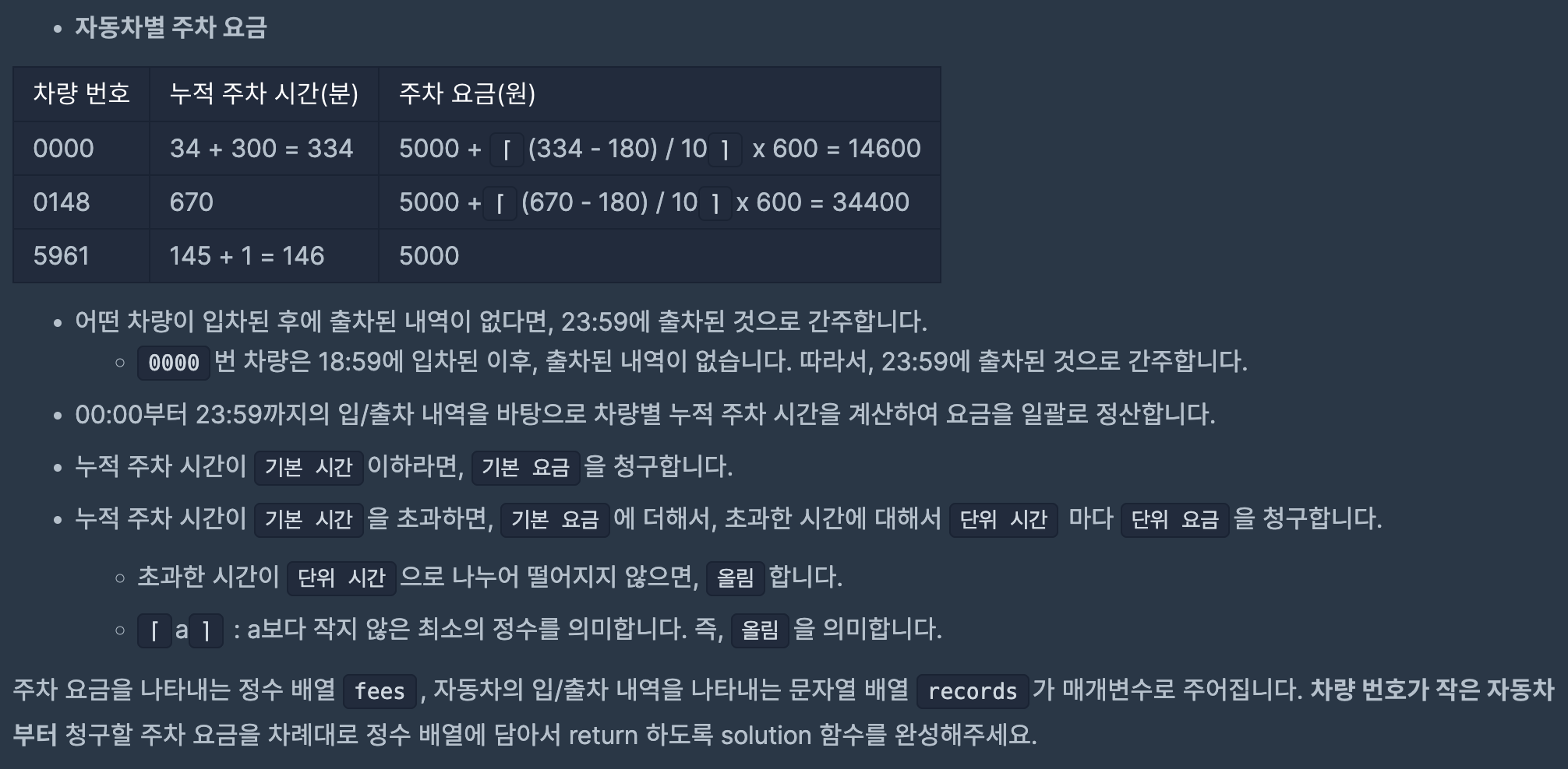 문제 바로가기 - https://school.programmers.co.kr/learn/courses/30/lessons/92341